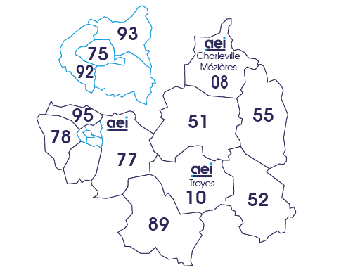 Et pour une plus grande efficacité, les équipes commerciales et techniques d’AEI vous accueillent également dans les agences de Charleville-Mézières dans les Ardennes (08) et de Courtry près de Chelles en Seine-et-Marne (77). Les équipes interviennent également sur les départements et de la Seine-Saint-Denis (93), des Yvelines (78), des Hauts-de-Seine (92), du Val d’Oise (95) et Paris (75).
